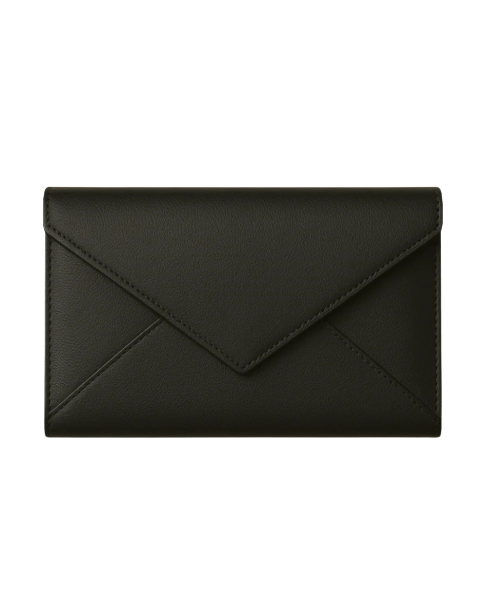 A slim evening clutch with a sharp V-flap Ladies Leather Bag pure lines and zero logos for a refined, minimalist look.
